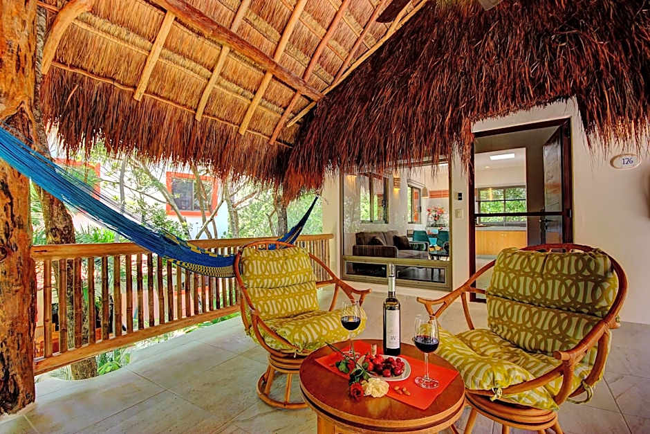 Surrounded by tropical gardens, this well-equipped bungalow is located opposite the swimming pool. It has 2 queen-size beds, a living room with cable TV, free Wi-Fi and a terrace with hammocks. Daily cleaning is included.