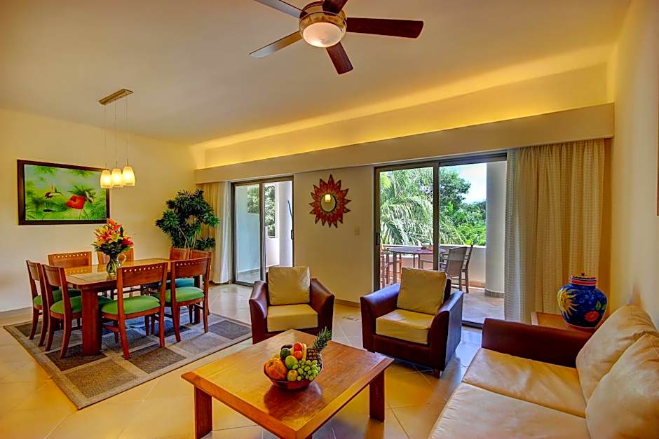 This apartment features 2 bathrooms on the first or second floor and a fully equipped kitchen and laundry room. It has a large balcony and living and dining room. Each bedroom has a private bathroom. It has a balcony with a great view over tropical gardens.